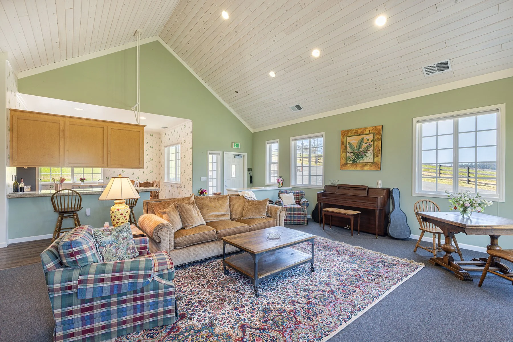 Midway up the driveway find the Event Building with adjacent Kitchen/Tack/Washroom Building and a Carport Structure clustered together with extensive baserocked parking. The Event Building spans approx. 1400 square feet & offers a half bathroom, 13 ft high ceilings, with 2 large garage doors on either end. Kitchen building spans just over 900 sq ft and is set up in 3 parts - the kitchen, wash room & tack room.